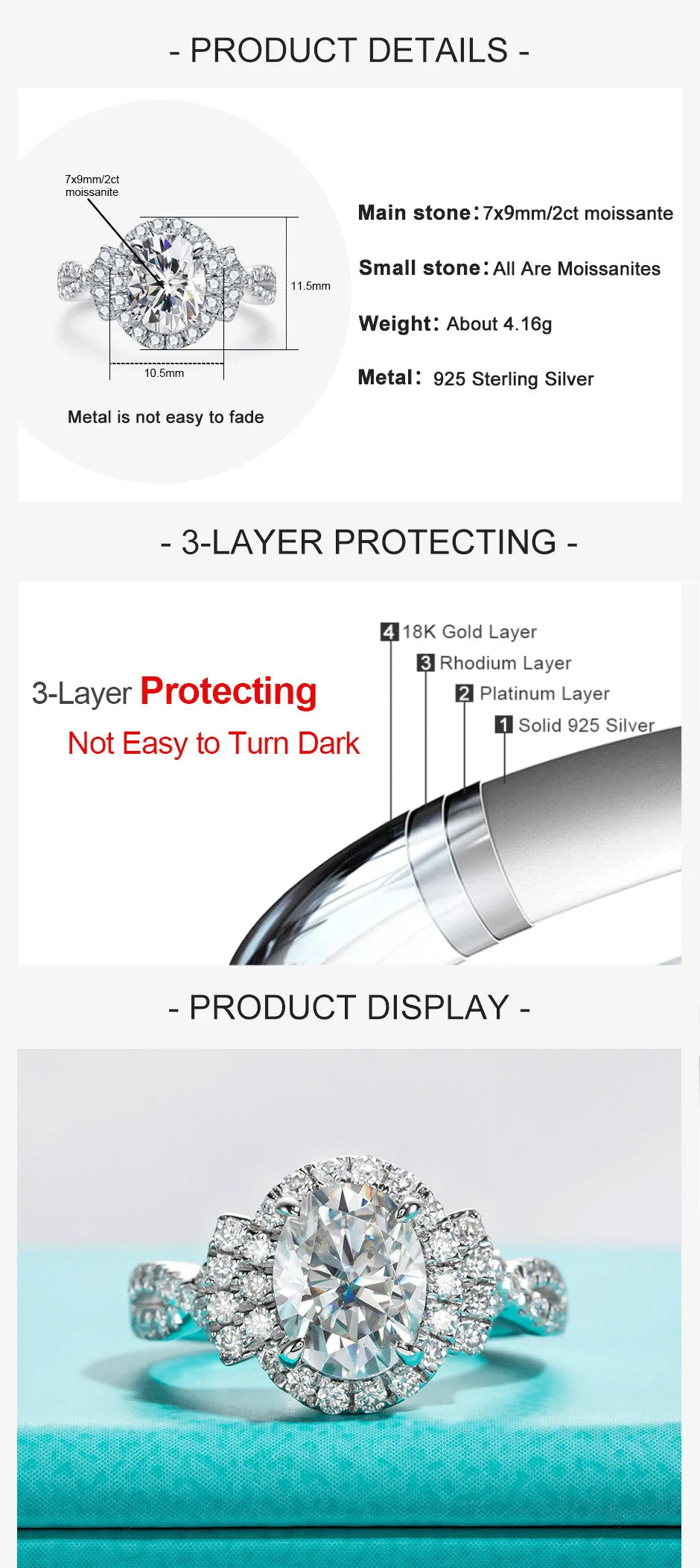 - Premium Moissanite: 2ct oval-cut D color moissanite for exceptional brilliance.