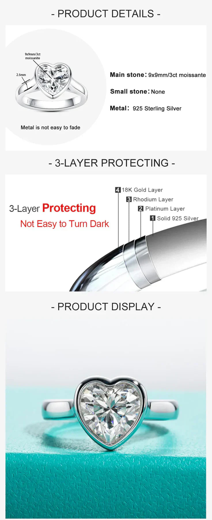 - 3 CT Heart Cut Moissanite: The stunning heart shape represents love and passion, radiating exceptional brilliance and fire that captures the essence of romance.