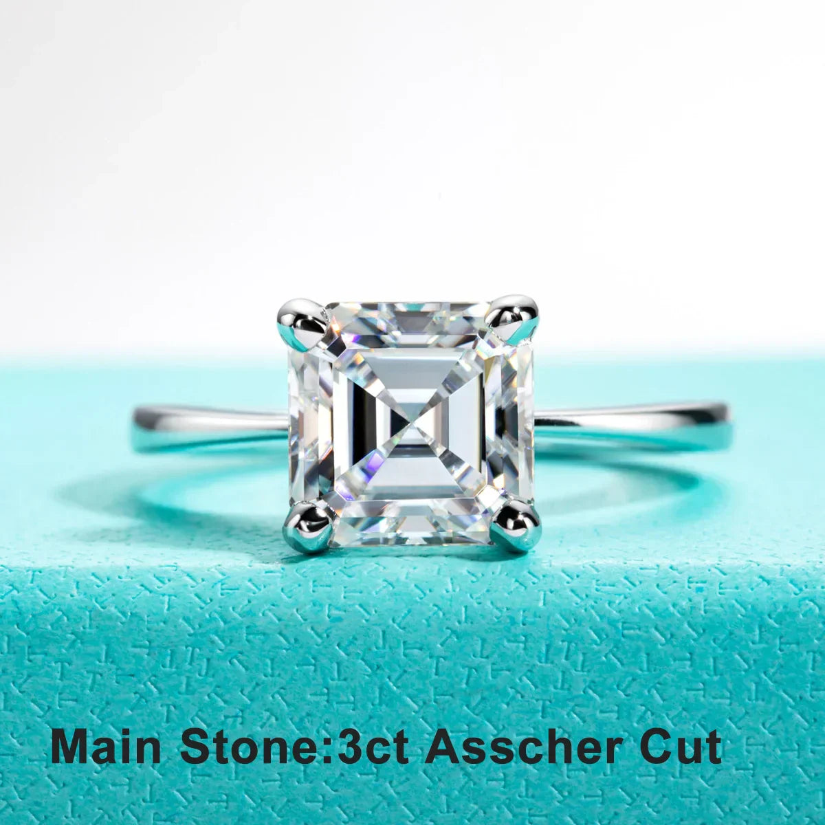 3CT D Color Asscher Cut Moissanite Engagement Ring