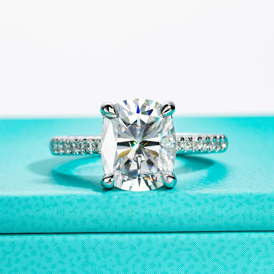 Whether for engagements, weddings, or as a special gift, this 5ct Cushion Cut Moissanite Engagement Ring is a stunning expression of love and commitment. Its luxurious design and brilliant sparkle make it an exceptional choice for women who appreciate elegance and timeless beauty.